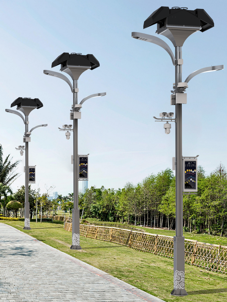 這是一款多功能智慧路燈,集成了多種智能模塊,可實現太陽能功能,可以搭載無人機,是城市智慧化建設的實用終端。